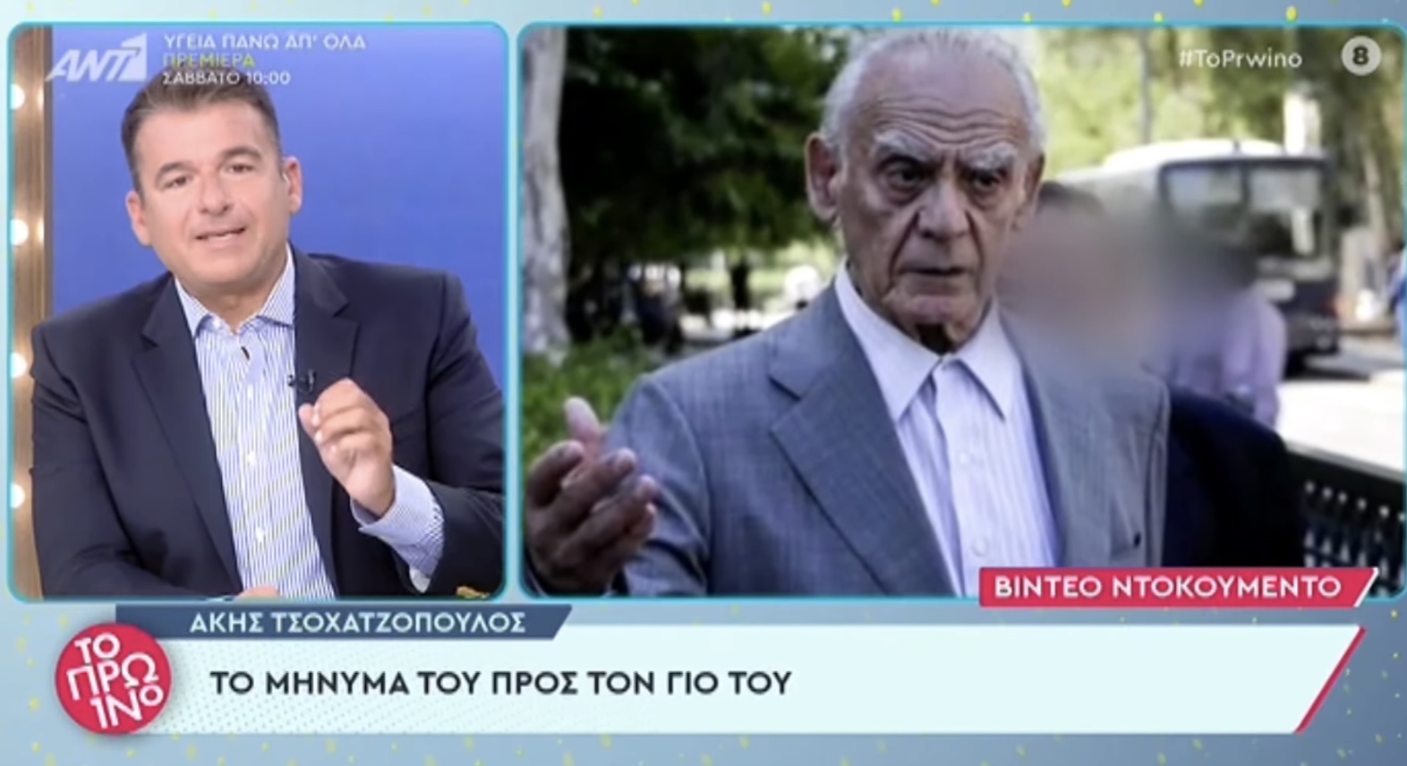 Η εκπομπή «το Πρωινό» του Γιώργου Λιάγκα, πρόβαλε σήμερα ένα ανατριχιαστικό βίντεο-ντοκουμέντο, στο οποίο ο Άκης Τσοχατζόπουλος, άρρωστος και εξαντλημένος λίγες εβδομάδες πριν πεθάνει, ζητά συγγνώμη από τον γιο του.