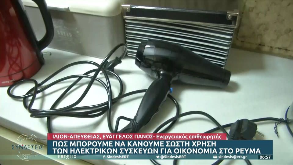 Συμβουλές για τη σωστή και οικονομική χρήση των ηλεκτρικών συσκευών από τον ενεργειακό επιθεωρητή Ευάγγελο Πάνο. Η ακρίβεια έχει ωθήσει τα νοικοκυριά να προσπαθούν να εξοικονομήσουν από όπου μπορούν. Ο κόσμος έχει περιορίσει τις αγορές του και κάνει οικονομία στο ρεύμα, ωστόσο υπάρχουν κάποιες συσκευές που ξεχνάμε να βγάλουμε από την πρίζα και ίσως «καίνε» περισσότερο από όσο πιστεύουμε. Χαρακτηριστικό παράδειγμα είναι η τηλεόραση, που μπορεί να κοστίσει 30 ευρώ τον χρόνο καθώς βρίσκεται 24 ώρες το 24ωρο στην πρίζα. Συμβουλές για τη σωστή και οικονομική χρήση των ηλεκτρικών συσκευών έδωσε, μιλώντας στην ΕΡΤ, ο ενεργειακός επιθεωρητής Ευάγγελος Πάνος. Πέρα από τις βασικές συσκευές, όπως είναι ο φούρνος και το ψυγείο, που δεν βγάζουμε από την πρίζα υπάρχουν και οι μικρότερες συσκευές, όπως είναι ο βραστήρας, που έχει 2kW ισχύ και σημαίνει ότι για 10 λεπτά χρήσης την ημέρα μπορεί να μας κοστίσει από 15 έως 35 λεπτά του ευρώ.