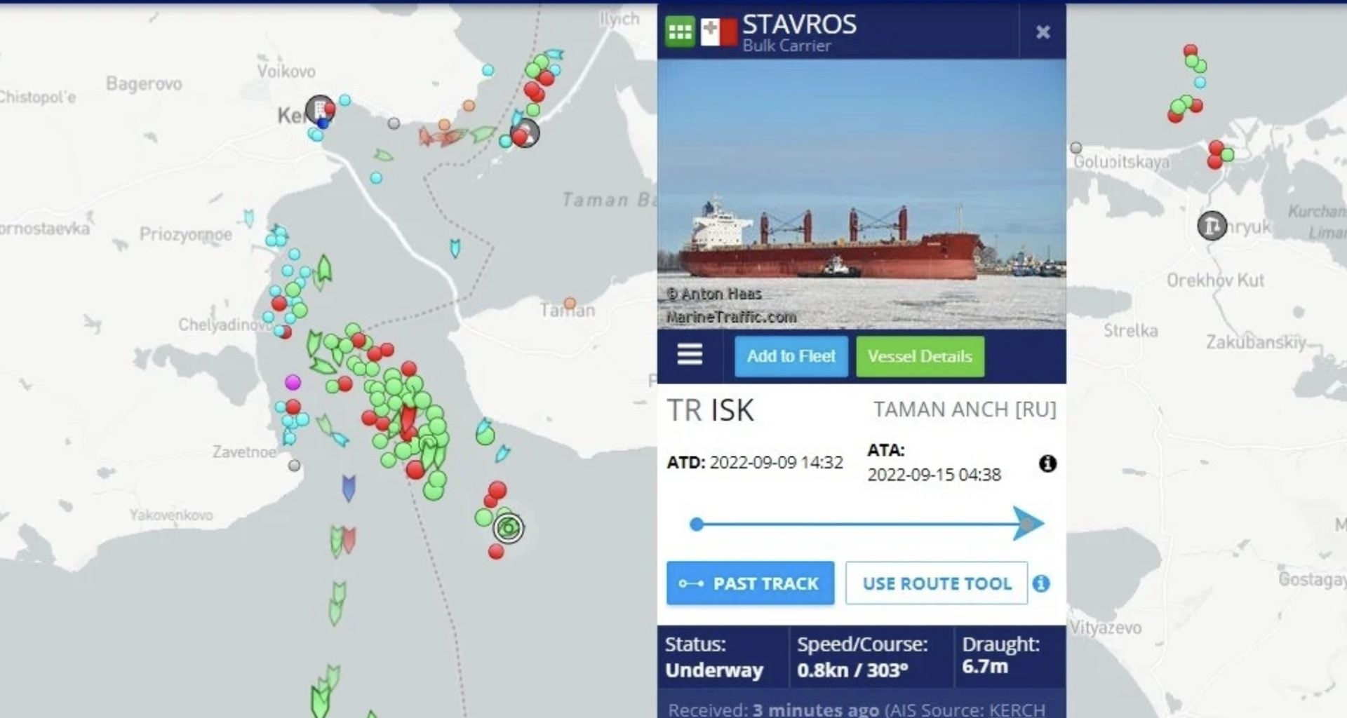 Το πλοίο Stavros, ολοκλήρωσε τη φόρτωση 53.000 τόνων άνθρακα από το Taman Bulk Cargo Terminal της Ρωσίας στις 29 Αυγούστου, σύμφωνα με στοιχεία από τις εταιρείες ανάλυσης Kpler και Logistic OS. Έφτασε σε λιμάνι κοντά στην πόλη Iskenderun στην Τουρκία στις 5 Σεπτεμβρίου, σύμφωνα με τα στοιχεία παρακολούθησης πλοίων του Bloomberg.