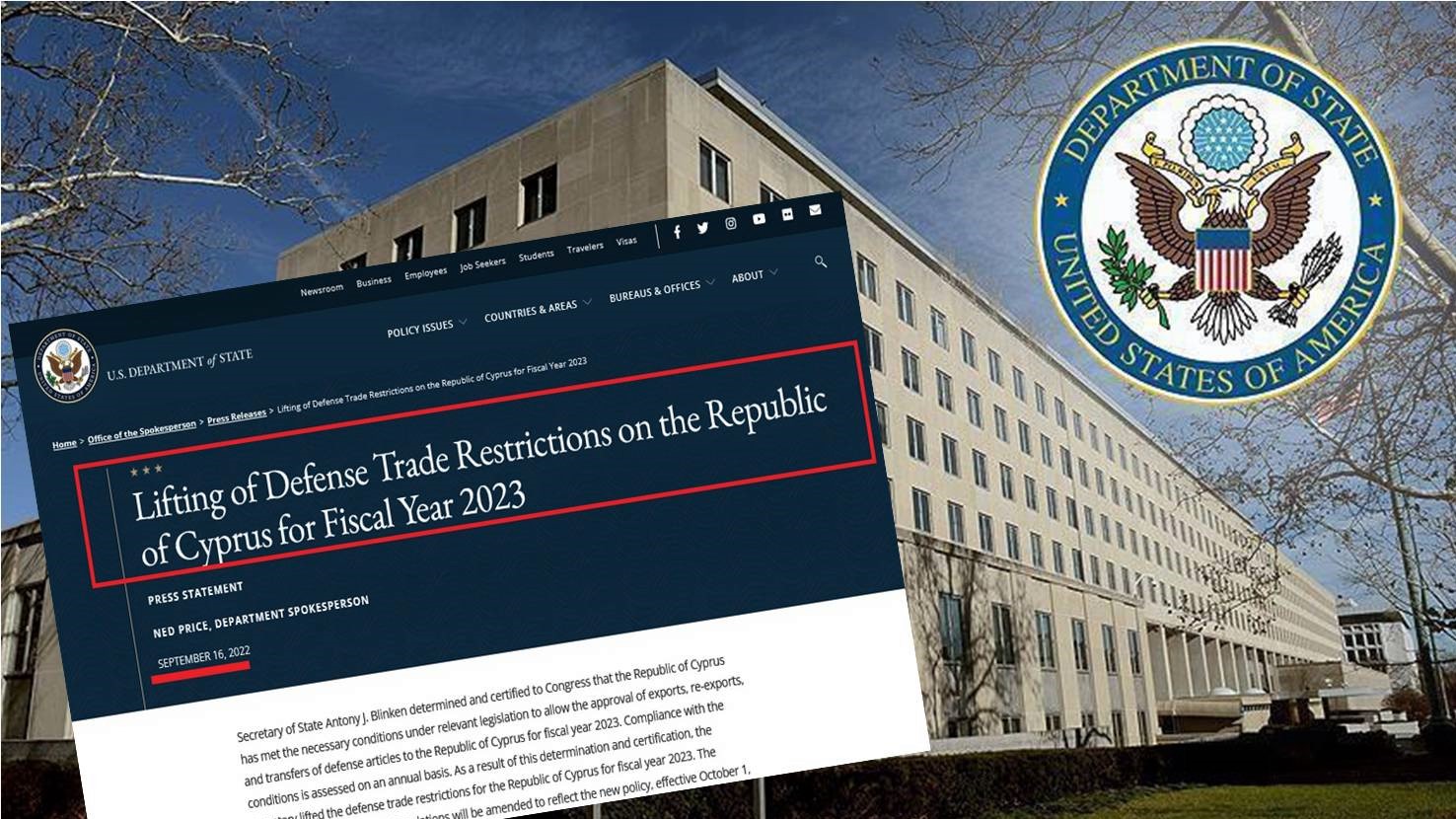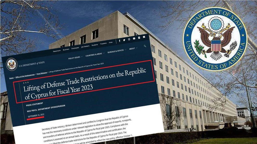 Η ανακοίνωση του Στέιτ Ντιπάρτμεντ για τη άρση των περιορισμών στο αμυντικό εμπόριο με την Κυπριακή Δημοκρατία για το οικονομικό έτος 2023: