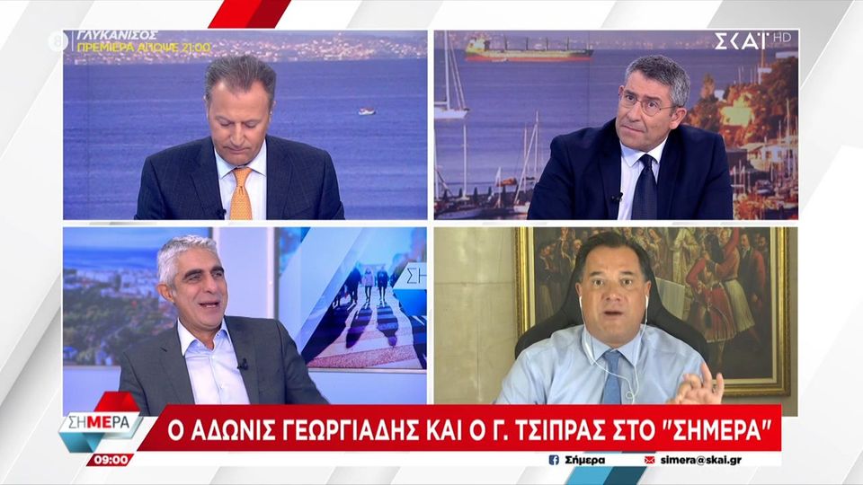 «Σκοτωμός» Τσίπρα – Γεωργιάδη στον ΣΚΑΪ: Σε μια αναφορά του κ. Γεωργιάδη για το πρωτογενές πλεόνασμα «που είχε ως στόχο το μνημόνιο Τσίπρα», ο κ. Γιώργος Τσίπρας απάντησε «εντάξει, το ‘χεις τερματίσει» κι αυτό προκάλεσε την έντονη αντίδραση του υπουργού.