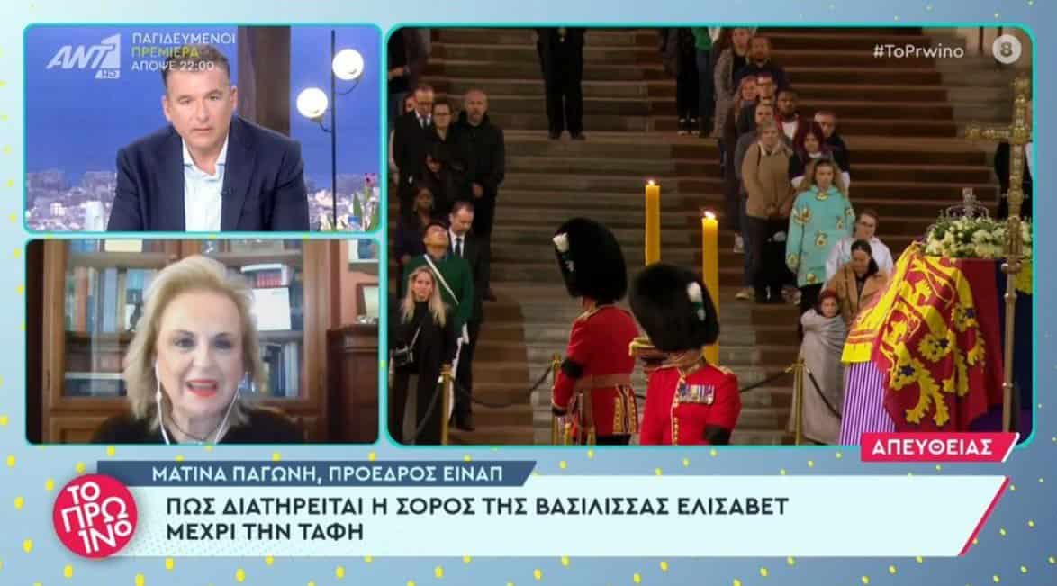 Πολλοί αναρωτιούνται πως διατηρήθηκε τόσες ημέρες η σορός της βασίλισσας Ελισάβετ. Σε αυτό το ερώτημα απάντησε η Ματίνα Παγώνη, μιλώντας στο «Πρωινό» και εξηγώντας την μέθοδο της ταρίχευσης: