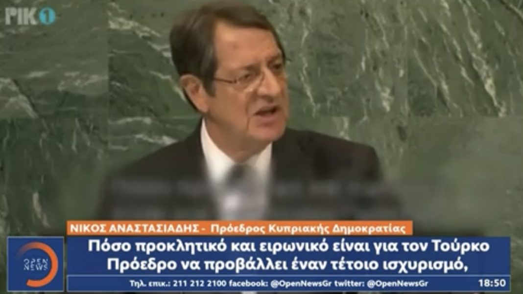 Ο κ. Αναστασιάδης αναφέρθηκε εκτενώς στο Κυπριακό, τις ενέργειες της Τουρκίας σε Κύπρο και Ελλάδα, ενώ έκανε λόγο για φθίνουσα πορεία και σταδιακή απώλεια της αξιοπιστίας των Ηνωμένων Εθνών, ο οποίος έχει μετατραπεί όπως είπε σε αποθετήριο προβλημάτων.