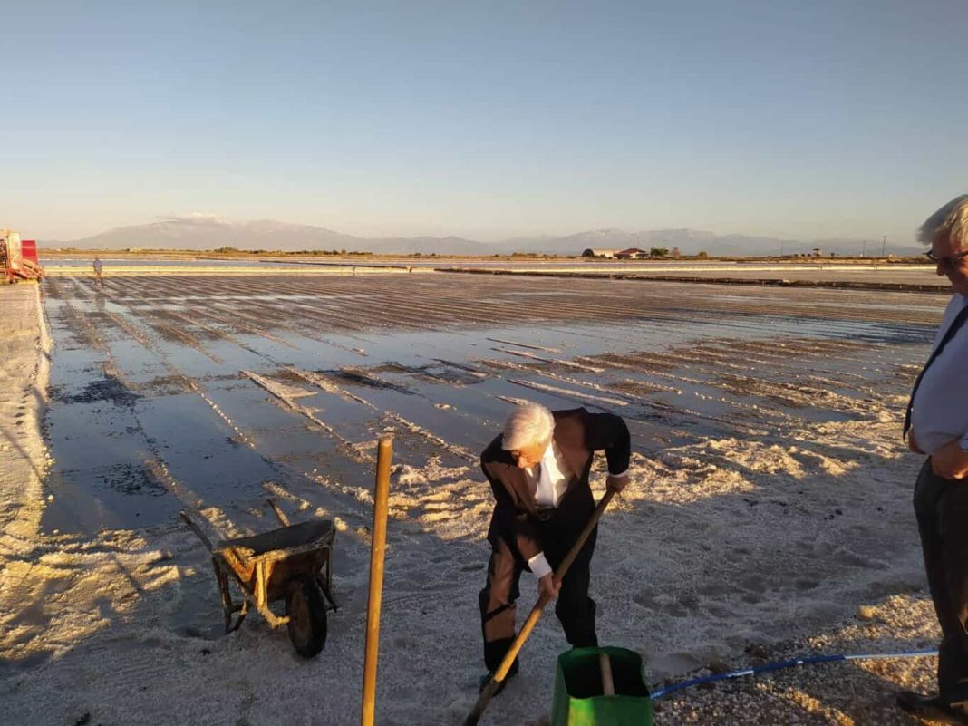 Μετέβη στα «τηγάνια» της αλυκής, συναντήθηκε με αλυκάριους και είδε από πρώτο χέρι πώς εξορύσσεται το αλάτι.