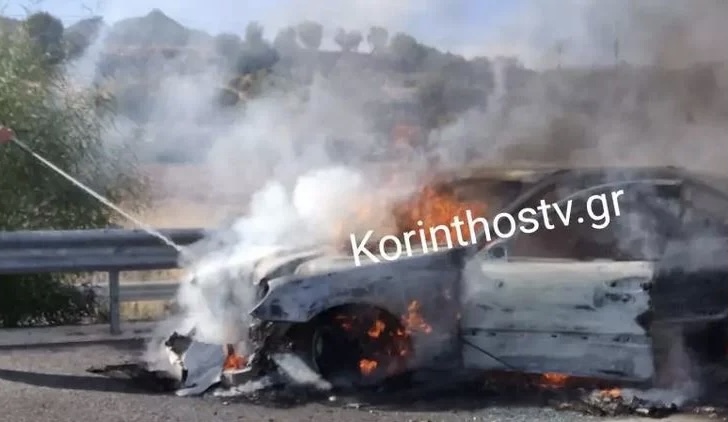 Στο σημείο επικράτησε πανδαιμόνιο. Ένα ταξί με 3 επιβαίνοντες τυλίχθηκε στις φλόγες στο 82ο χλμ της Εθνικής Οδού Κορίνθου – Πατρών, στο ύψος της Αρχαίας Κορίνθου. Ο οδηγός του ταξί έκανε δεξιά και στάθμευσε στη ΛΕΑ, με σκοπό να προλάβει να κατέβει ο ίδιος αλλά και οι επιβάτες. Σύμφωνα με πληροφορίες, η φωτιά ξεκίνησε από λάστιχο στο ταξί και πολύ γρήγορα τύλιξε όλο το όχημα.