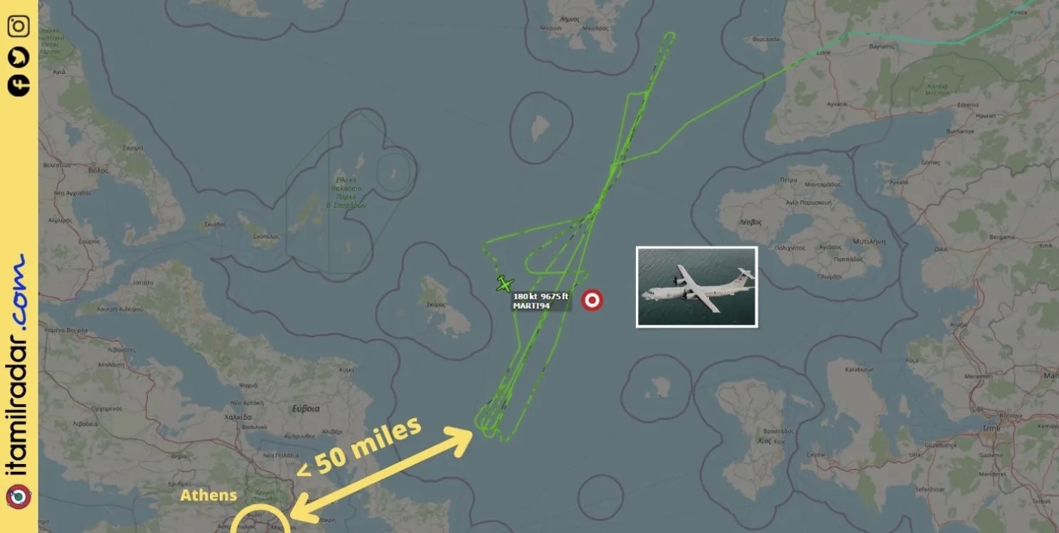 Το ATR P-72 MPA του Τουρκικού πολεμικού ναυτικού σε λιγώτερο από 50 μίλια απόσταση από την Αθήνα.