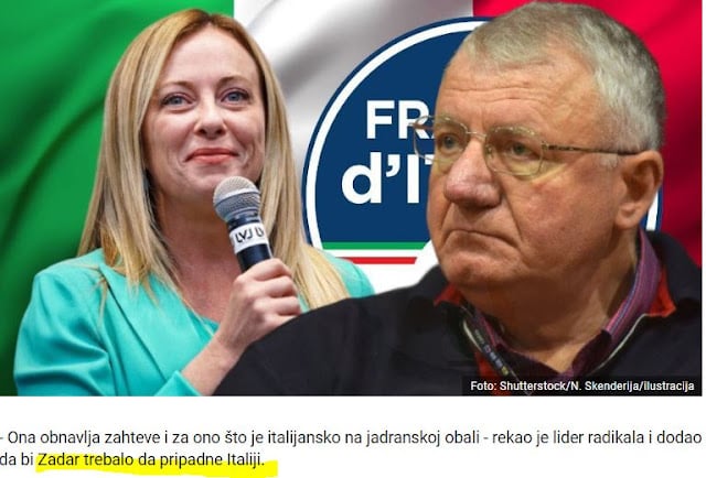 «Αναβιώνει τις απαιτήσεις για ό,τι είναι ιταλικό στις ακτές της Αδριατικής» – είπε ο ριζοσπάστης ηγέτης και πρόσθεσε ότι η πόλη Ζαντάρ των δαλματικών ακτών πρέπει να ανήκει στην Ιταλία.