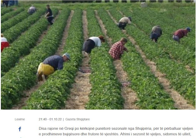 Ορισμένες περιοχές της Ελλάδας αναζητούν εποχικούς εργάτες από την Αλβανία, για να αντεπεξέλθουν στη συγκομιδή των φθινοπωρινών γεωργικών και οπωροφόρων καλλιεργειών.