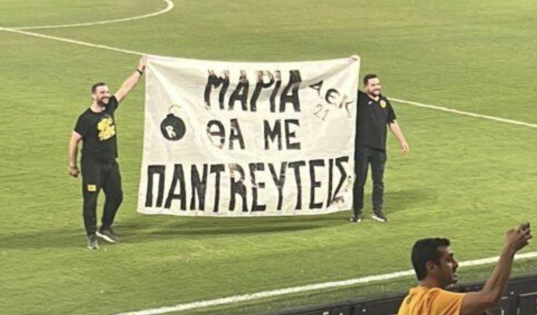 Φίλος της ΑΕΚ περίμενε να αποκτήσει το νέο της γήπεδο η ομάδα του για να κάνει πρόταση γάμου στην αγαπημένη του αναρτώντας το σχετικό πανό στο ημίχρονο του αγώνα με τον Ιωνικό. Η ΑΕΚ είχε σημειώσει δύο γκολ, δεν είχε δεχτεί κανένα, η ατμόσφαιρα ήταν εορταστικοί, αλλά όλοι έψαχναν να βρουν την κοπέλλα που θα έλγε το «ναι» στον αγαπημένο της σε μια πρόταση που έγινε ενώπιον χιλιάδων ανθρώπων.