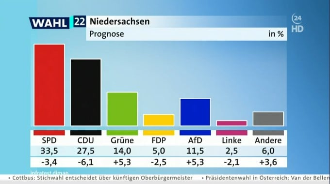 «Δεν είναι καλό αποτέλεσμα για μας, αλλά επιθυμούμε μια σταθερή κυβέρνηση για την Κάτω Σαξονία. Θα ήταν καλό να συνεχίσει ο ίδιος συνασπισμός», δήλωσε ο Γενικός Γραμματέας του CDU Μάριο Τσάγια.