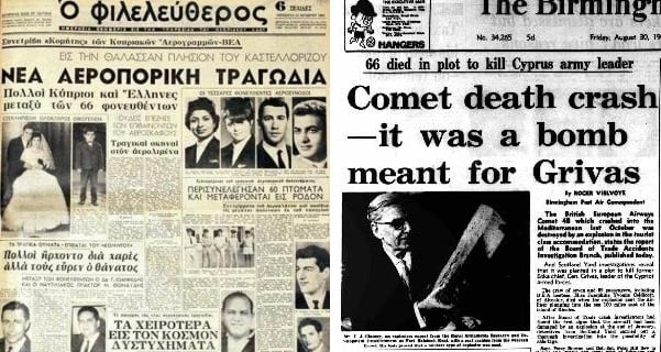 Στις 12 Οκτωβρίου 1967 στο αεροσκάφος de Havilland Comet που εκτελούσε την Πτήση CY 284 (Cyprus Airways Flight 284) προς το Διεθνές Αεροδρόμιο Λευκωσίας (Nicosia International Airport) εξερράγη στον θάλαμο επιβατών μια εκρηκτική συσκευή.