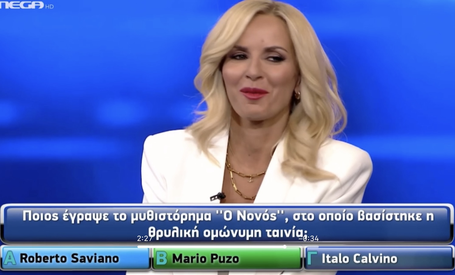 Μια αθώα ερώτηση έφερε σε τρομερά δύσκολη θέση την παρουσιάστρια του The Chase, Μαρια Μπεκατωρου. Η ερώτηση αφορούσε τον συγγραφέα του βιβλίου πάνω στο οποιο βασίστηκε η ταινία ο Νονός.