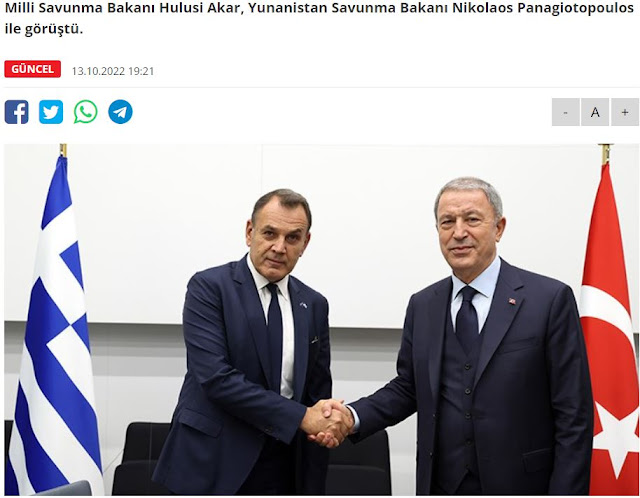 Στο πλαίσιο αυτό, ο υπουργός Άκαρ συναντήθηκε με τον Έλληνα υπουργό Άμυνας Παναγιωτόπουλο.