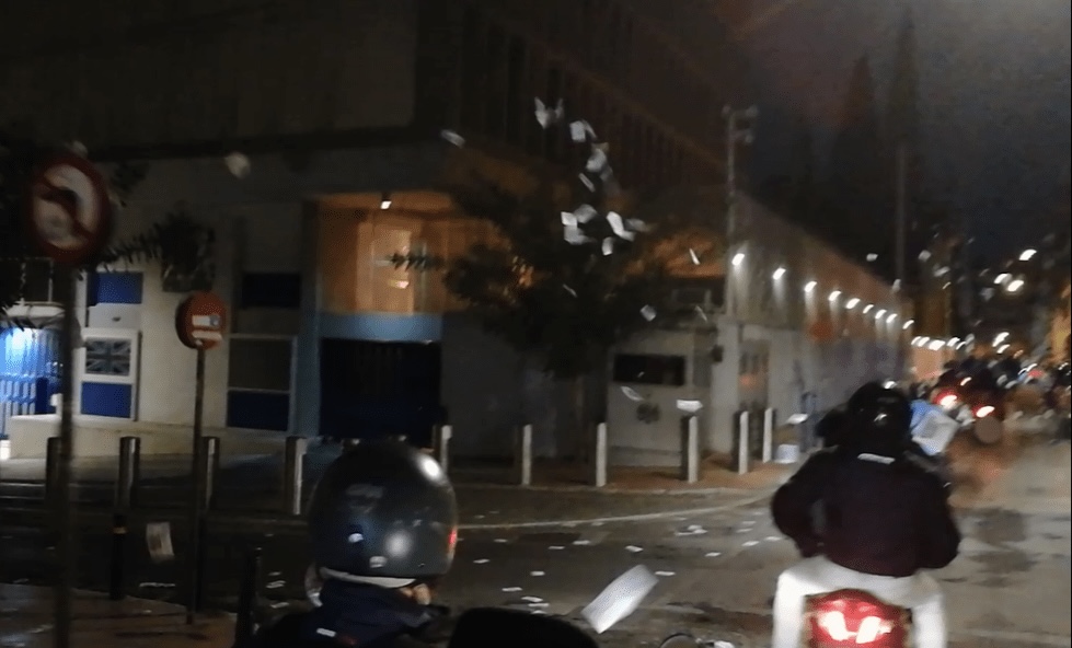 Δεκάδες μηχανάκια πραγματοποίησαν μοτοπορεία στο Κολωνάκι περνώντας από κεντρικούς δρόμους της περιοχής όπως και από την Βρετανική πρεσβεία, το σπίτι του Βρετανού πρέσβη, την Γερμανική πρεσβεία, το σπίτι του πρέσβη της Αργεντινής και την πρεσβεία του Μαυροβουνίου.