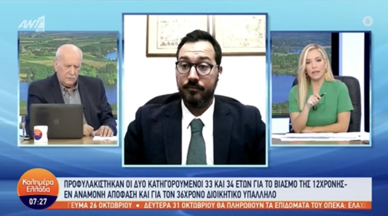 Θα προσφύγουμε γιατί όπως σας είπα εδώ υπάρχει ένα νομοθετικό κενό. Η συνάντηση δεν κράτησε πάνω από 2,5 λεπτά. Με το που της έδωσε τα χρήματα και της είπε πάμε σε ένα ξενοδοχείο γιατί νιώθω άσχημα, του ανέφερε πάω να αφήσω τα χρήματα στη μητέρα μου και με μηνύματα προκύπτει ότι έγινε μέσα σε τρία λεπτά το πολύ. Εμένα μου είπε ότι την έκανε γύρω στα 17. Και 15 να θεωρούσε νομικά, έχει πλημμεληματική δίωξη. Εμείς ζητάμε το νομοθετικά ορθό. Επίσης, στο παρελθόν δεν έχει ενοχλήσει ποτέ κανέναν. Είναι ένα κριτήριο. Δεν είναι επικίνδυνος για φυγή». ΠρωτοσελιδαΕιδήσεις