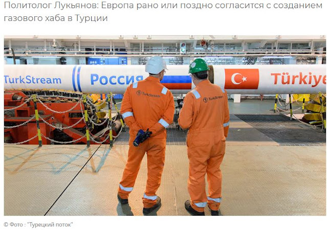 «Η πρόταση του Πούτιν στον Ερντογάν να μετατρέψει την Τουρκία σε ευρωπαϊκό κόμβο φυσικού αερίου είναι μια κομψή ιδέα. Εάν η Τουρκία μετατραπεί σε κόμβο και όλα τα άλλα σταματήσουν να λειτουργούν, τότε για την Ευρώπη γίνεται αδιαμφισβήτητο γεγονός. Και δεδομένου ότι ο κόμβος προϋποθέτει ότι η Τουρκία θα λαμβάνει φυσικό αέριο όχι μόνο από Ρωσία, τότε αυτό θα επιτρέψει στην ΕΕ να προσποιηθεί ότι αρνήθηκε το ρωσικό αέριο», είπε ο Λουκιάνοφ.