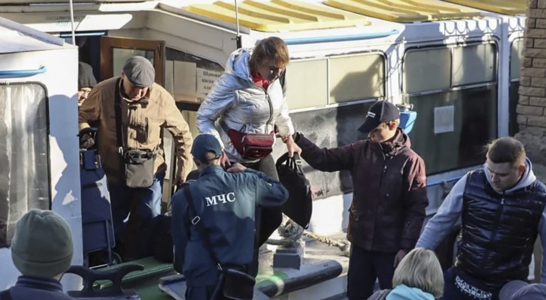 Χιλιάδες αμάχων εγκαταλείπουν εδώ και ημέρες την πόλη διασχίζοντας τον ποταμό Ντνίπρο, μετά από πληροφορίες για μία επικείμενη αντεπίθεση των Ουκρανών, με αντικειμενικό σκοπό την ανακατάληψη της πόλης, ενώ το σημερινό μήνυμα διαδόθηκε κατεπειγόντως.
