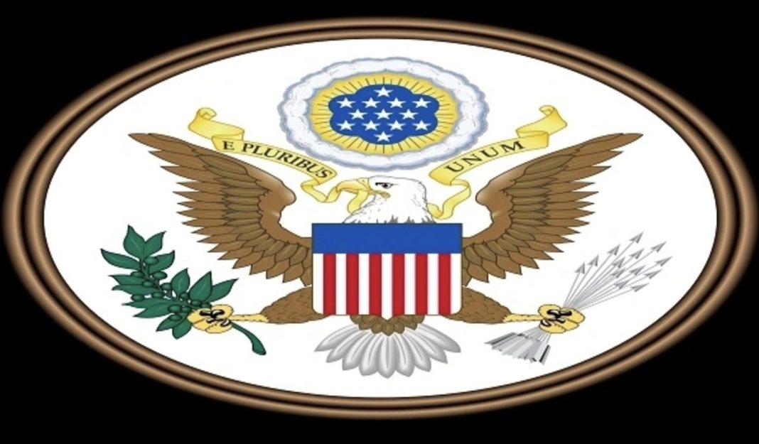 Στο κέντρο του εμβλήματος απεικονίζεται ένας αετός. Με το αριστερό πόδι του κρατά μία φαρέτρα με τόξα, που συμβολίζει τη δύναμη του πολέμου. Μετά τον Β’ Παγκόσμιο Πόλεμο, με διάταγμα του προέδρου Χάρι Τρούμαν, στις 25 Οκτωβρίου του 1945, στο δεξί πόδι προστέθηκε ένα κλαδί ελιάς, σύμβολο της ειρήνης. Το στήθος του αετού καλύπτεται από μία ασπίδα με 13 κόκκινες και λευκές ρίγες, όσες και οι πολιτείες που ενώθηκαν για να δημιουργήσουν το νέο κράτος. Η μεγάλη μπλε ρίγα, που υπάρχει στην κορυφή τους, αντιπροσωπεύει τον πρόεδρο και το κογκρέσο. Το λευκό χρώμα συμβολίζει την αγνότητα και την αθωότητα, το κόκκινο τη σκληρότητα και το μπλε τη δικαιοσύνη. Ο αστερισμός με τα 13 αστέρια πάνω από το κεφάλι του αετού συμβολίζει τη γέννηση μιας νέας χώρας ανάμεσα στα υπόλοιπα έθνη.