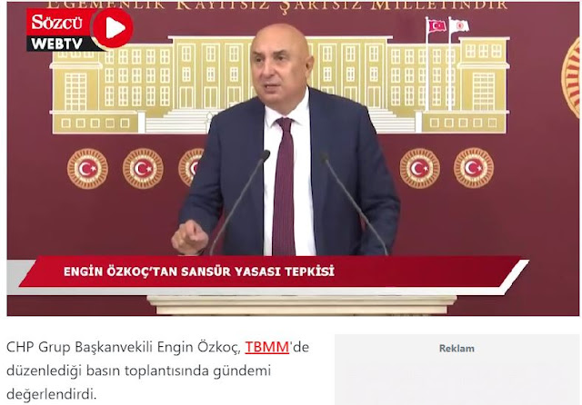 Ο Αντιπρόεδρος της Κοινοβουλευτικής Ομάδας του Ρεπουμπλικανικού Λαϊκού Κόμματος-CHP, Ενγκίν Οζκότς, αντιδρώντας στο νόμο για τη λογοκρισία, δήλωσε: