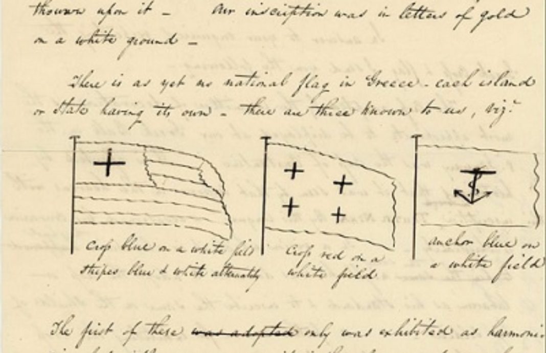 Τα πρώτα σχέδια της Ελληνικής σημαίας οπως βρέθηκαν σε μια επιστολή Αμερικανού φιλέλληνα το 1824