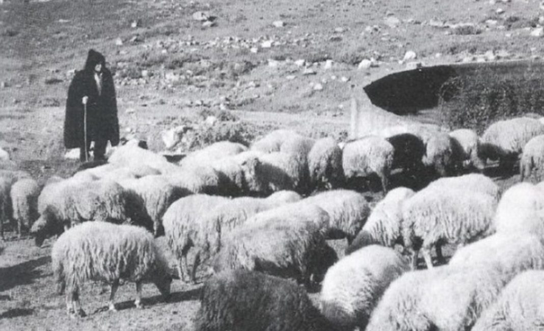 Κάποτε ένας βοσκός, είχε πάει σε ένα βουνό για να βοσκήσουν τα πρόβατά του. Ξαφνικά ο ουρανός συννέφιασε και άρχισε μία δυνατή μπόρα. Ο βοσκός ανησύχησε και έψαχνε τρόπο να προφυλαχθεί ο ίδιος, αλλά και τα πρόβατά του. Λίγα μέτρα πιο πέρα υπήρχε ένα ξωκλήσι και η πρώτη σκέψη που του ήρθε στο μυαλό ήταν να μεταφέρει τα πρόβατά του μέσα στο ναό. Κατεύθυνε τα πρόβατα μέσα και προσπάθησε να μπει και ο ίδιος. Έχοντας, όμως, την «γκλίτσα» οριζόντια στους δύο ώμους του πίσω στον σβέρκο, δεν κατάφερνε να χωρέσει από την πόρτα.