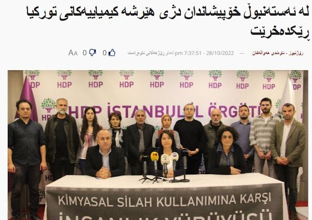 Το Λαϊκό Δημοκρατικό Κόμμα (HDP), το Λαϊκό Δημοκρατικό Κογκρέσο (HDP) και οι Ενωμένες Δυνάμεις Αγώνα (YSF) πραγματοποίησαν συνέντευξη Τύπου στο γραφείο του κόμματος στην Κωνσταντινούπολη σήμερα για τις χημικές τουρκικές επιθέσεις».