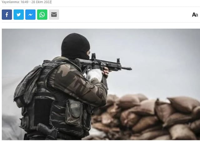 « Οι πυροβολισμοί παρενόχλησης από τρομοκράτες δεν μένουν ατιμώρητοι. Οι Τουρκικές Ένοπλες Δυνάμεις εξουδετέρωσαν 13 τρομοκράτες ( μέλη της Ομάδας Λαϊκής Προστασίας) του YPG, οι οποίοι άνοιξαν πυρ για να διαταράξουν την ειρήνη και την ασφάλεια στις περιοχές της Ασπίδας του Ευφράτη και της Πηγής Ειρήνης στη βόρεια Συρία.