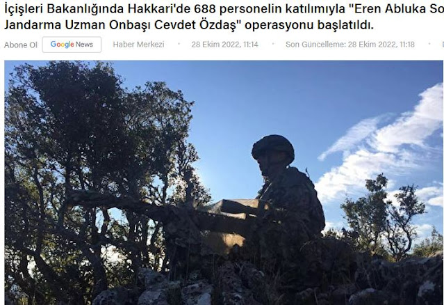 Με τη συμμετοχή 688 στελεχών της Στρατοχωροφυλακής ξεκίνησε στο Χακάρι γιγαντιαία επιχείρηση κατά των Κούρδων ανταρτών στην επαρχία αυτή.