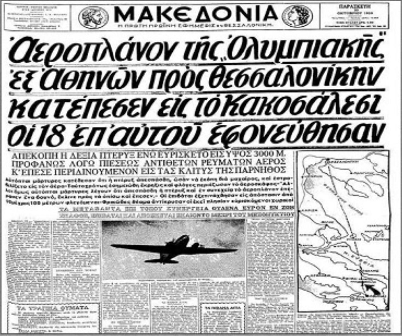 Συνέβη στις 29 Οκτωβρίου 1959, όταν το αεροπλάνο που εκτελούσε το απογευματινό δρομολόγιο της νεοσύστατης Ολυμπιακής Αεροπορίας από την Αθήνα προς τη Θεσσαλονίκη κατέπεσε λίγο μετά την απογείωσή του από το αεροδρόμιο του Ελληνικού, με αποτέλεσμα να χάσουν τη ζωή τους και οι 18 επιβαίνοντες.