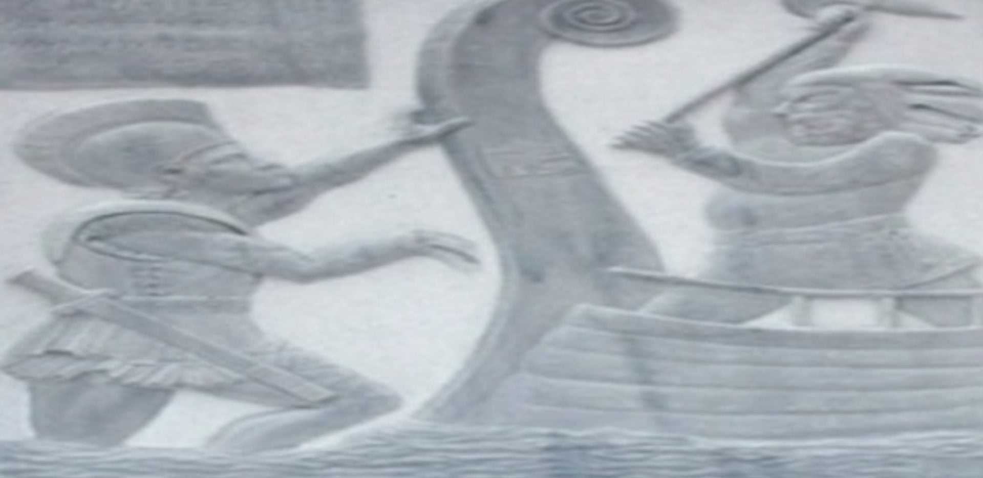 Λεπτομέρεια από αναπαράσταση του 1895 της τοιχογραφίας της μάχης τουΜαραθώνα στην Ποικίλη Στοά, που δείχνει τον Κυνέγειρο να εμποδίζει το απόπλουενός περσικού πλοίου.