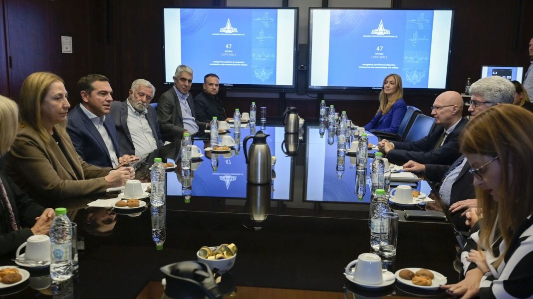 Νωρίτερα, ο πρόεδρος του ΣΥΡΙΖΑ – ΠΣ, Αλέξης Τσίπρας, είχε συναντήσεις τόσο με τη διοίκηση όσο και με τους εργαζόμενους της ΕΑΒ. Ο πρόεδρος των εργαζομένων της εταιρείας μετέφερε στον αρχηγό της αξιωματικής αντιπολίτευσης την τραγική κατάσταση στην οποία έχει περιέλθει τόσο η εταιρεία, όσο και οι εργαζόμενοι σε αυτή εξαιτίας των πολιτικών της κυβέρνησης Μητσοτάκη.