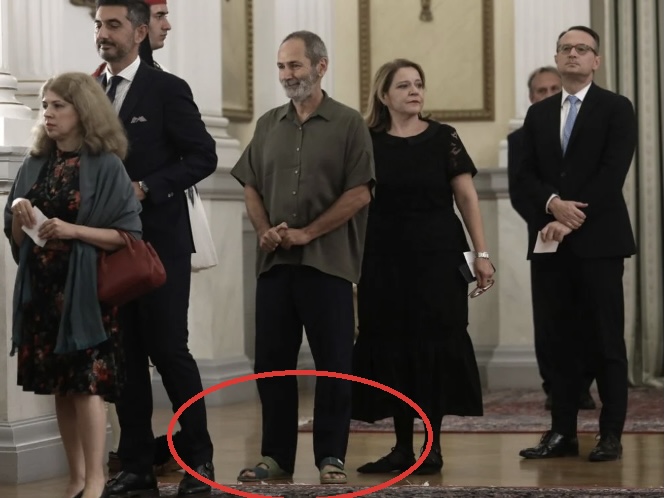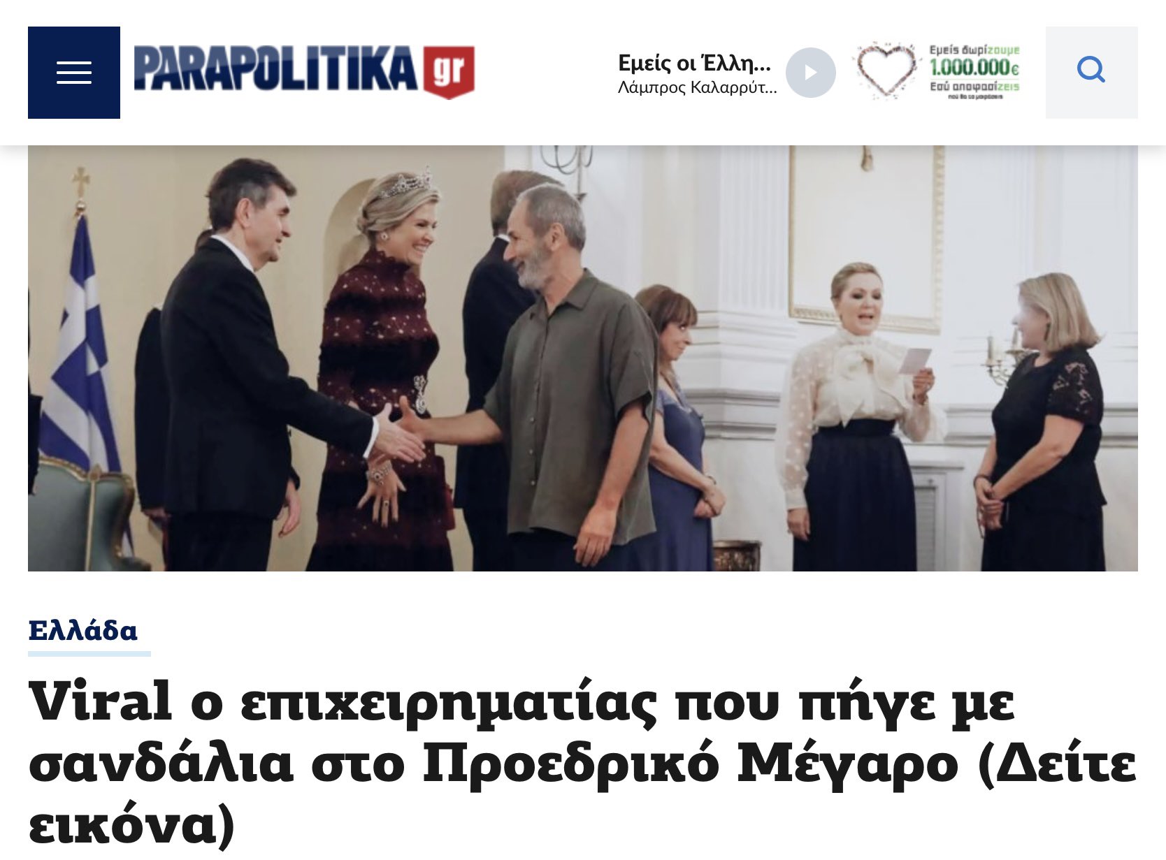 Πάει επιχειρηματίας,που πληρώνει διαφημίσεις στα Πετσωμενα με σανδάλια και έξω τα πουκάμισα στο Προεδρικό και «κλέβει» την παρασταση.