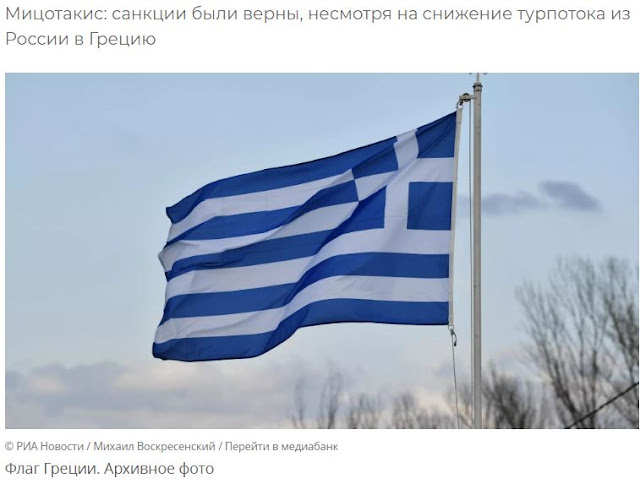 Η ελληνική τουριστική βιομηχανία έχει υποφέρει από  τις αντιρωσικές κυρώσεις, επειδή το καλοκαίρι σχεδόν κανείς από τη Ρωσία δεν ήρθε στη χώρα, δήλωσε ο πρωθυπουργός Κυριάκος Μητσοτάκης μετά τη συνάντηση με την πρωθυπουργό της Εσθονίας Κάγια Κάλλας, γράφει η ρωσική Vzglyad.