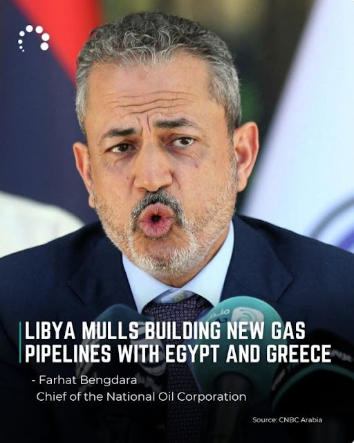 Libya’s National Oil Corporation is examining a project proposal of creating two gas pipelines to connect with #Greece and the Egyptian city of #Damietta, NOC chief Farhat Bengdara tells CNBC Arabia The #Libya Update