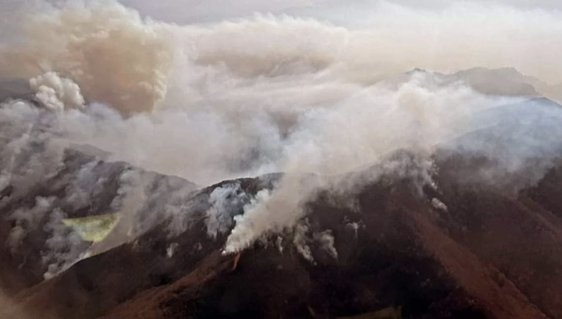 Η φωτιά είναι σε μεγάλο υψόμετρο και το νερό δεν ανεβαίνει με επίγεια μέσα, με μόνη ελπίδα τα εναέρια μέσα, αλλά και τη βροχή την οποία περιμένουν εδώ και μέρες να σώσει την κατάσταση.