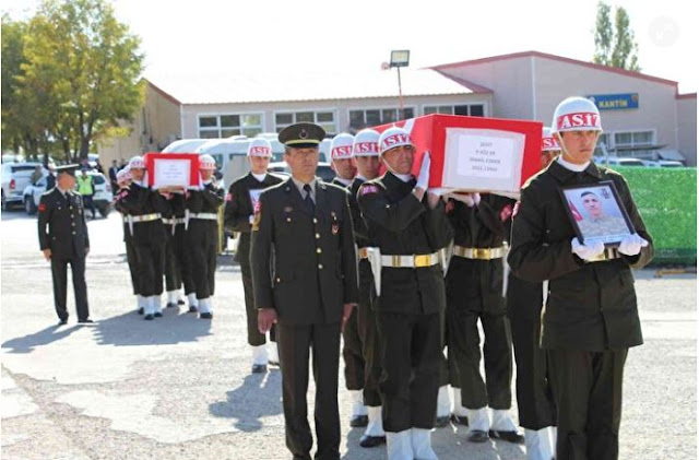 «Ο στρατιώτης πεζικού Ισμαήλ Εσμέρ και ο συμβασιούχος στρατιώτης πεζικού Μουσταφά Οζτούρκ, που σκοτώθηκαν από πυρά των τρομοκρατών στο βόρειο Ιράκ, στάλθηκαν στις γενέτειρές τους μετά την τελετή στο Σιρνάκ», αναφέρει το δημοσίευμα.