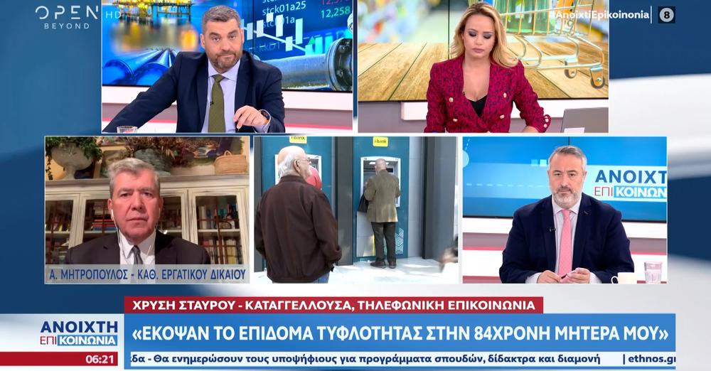Επώνυμη καταγγελία στο καναλι open απο την κόρη της ηλικιωμένης που της έκοψαν στα 84 της το επιδομα τυφλότητας.