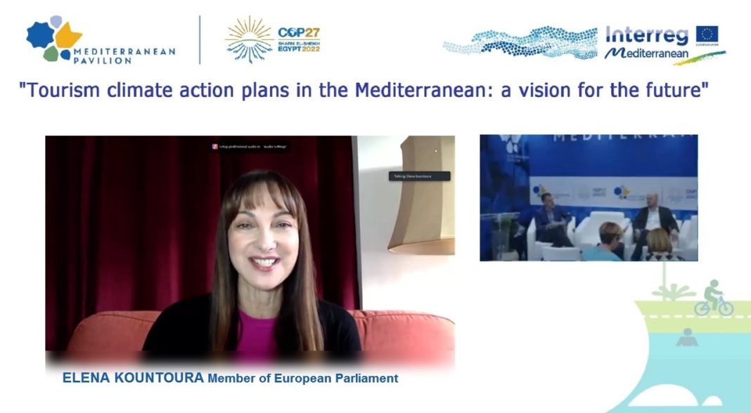 Στην ανάγκη συλλογικού και ολοκληρωμένου σχεδίου δράσης για τον βιώσιμο τουρισμό στη Μεσόγειο, αναφέρθηκε η Ευρωβουλευτής Έλενα Κουντουρά, προσκεκλημένη ομιλήτρια σε ειδική εκδήλωση της Κοινότητας Βιώσιμου Τουρισμού της Μεσογείου, MED Sustainable Tourism Community, στο πλαίσιο της Διάσκεψης των Ηνωμένων Εθνών για την κλιματική αλλαγή COP27 στην Αίγυπτο.