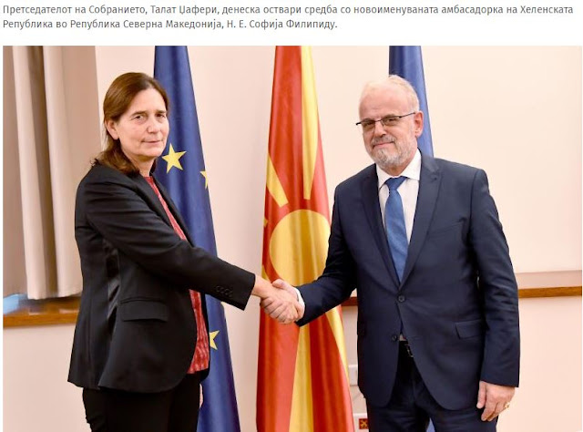 Ο Πρόεδρος της Συνέλευσης Ταλάτ Τζαφέρι συναντήθηκε με τη νεοδιορισθείσα πρέσβειρα της Ελληνικής Δημοκρατίας στα Σκοπια,  Σοφία Φιλιππίδου.