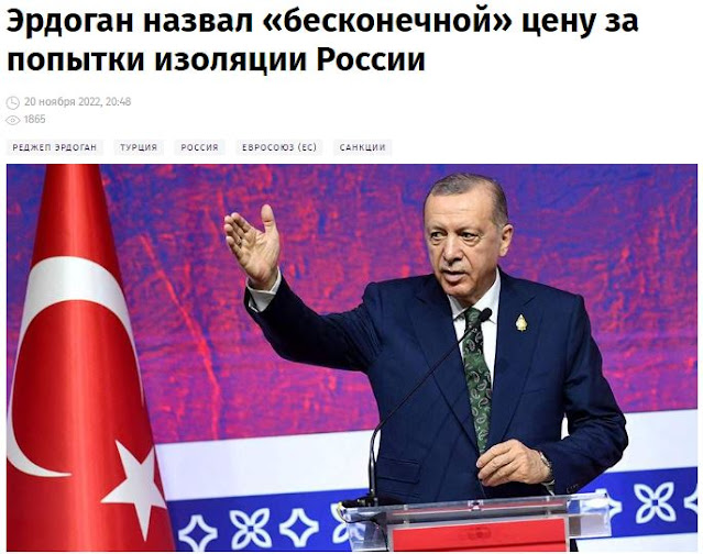 Ο Τούρκος ηγέτης υπογράμμισε προηγουμένως ότι η Δύση, υπό την ηγεσία των Ηνωμένων Πολιτειών της Αμερικής, επιτίθεται στη Ρωσία χωρίς κανέναν περιορισμό, γι’ αυτό και η Μόσχα πρέπει να της αντιταχθεί.