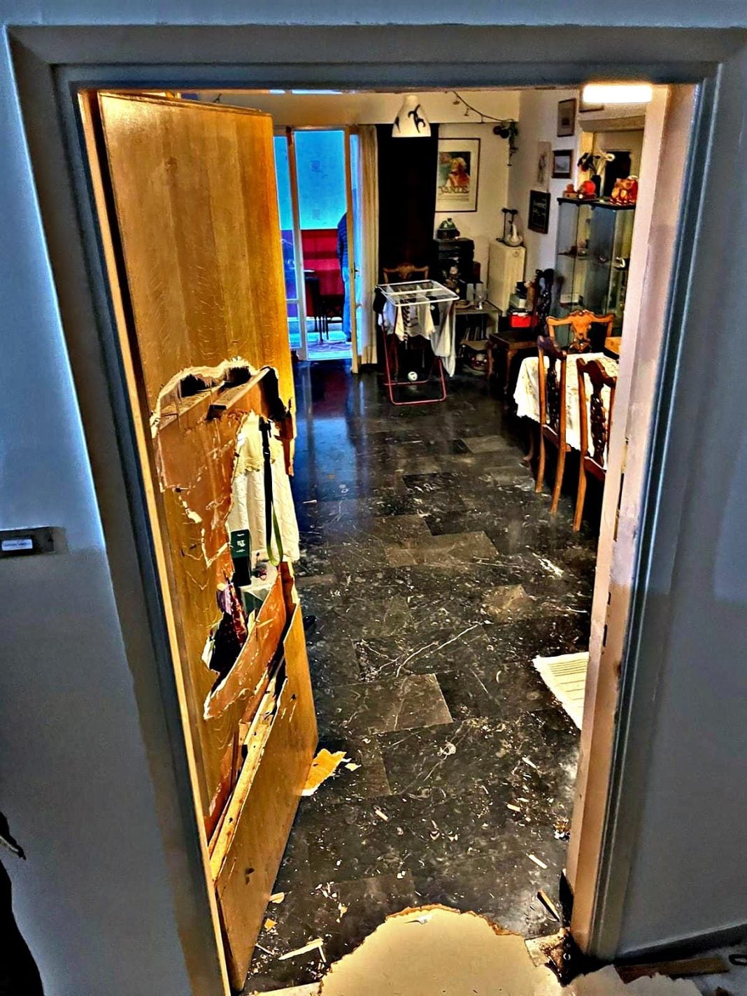 Νωρίς νωρίς το πρωι αστυνομικοι διέλυσαν στην κυριολεξία την πόρτα του διαμερίσματος της Ιωάννας Κολοβού που πλειστηριάστηκε για χρέος 15.000 για να πραγματοποιηθεί η έξωση.