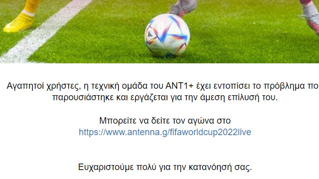 Μέχρι να διορθωθεί η βλάβη της συνδρομητικής πλατφόρμας, η αναμέτρηση θα μεταδιδόταν απο από την ελεύθερη ιστοσελίδα του καναλιού, με τον ΑΝΤ1 να κάνει και την σχετική δημοσίευση στα social media.