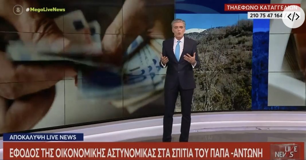 Οπως μεταδιδει στην εκπομπή Live News, ο Νίκος Ευαγγελατος, είναι σε εξέλιξη έφοδος της Οικονομικής Αστυνομίας στα σπίτια του πατρός Αντωνίου και της πρεσβυτέρας. Στο στόχαστρο των ελέγχων βρίσκεται η μεζονέτα στη Ραφήνα 105,580 τ.μ., όπου η «Κιβωτός του Κόσμου» έχει κατά κυριότητα 100% το Α1 ακίνητο στον πρώτο όροφο, όπως και θέση στάθμευσης 15 τ.μ