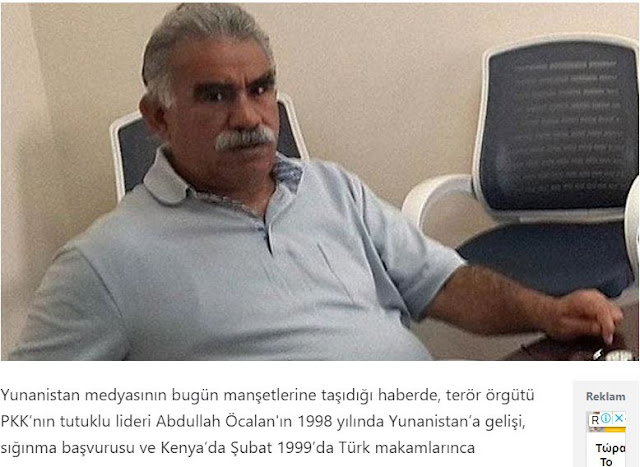 «Αποκαλύφθηκε ότι ο Αμπντουλάχ Οτσαλάν, αρχηγός της τρομοκρατικής οργάνωσης (του PKK) που καταδικάστηκε σε ισόβια κάθειρξη στο Ιμραλί, κατέθεσε μήνυση κατά της Ελλάδας στο Ευρωπαϊκό Δικαστήριο Ανθρωπίνων Δικαιωμάτων».