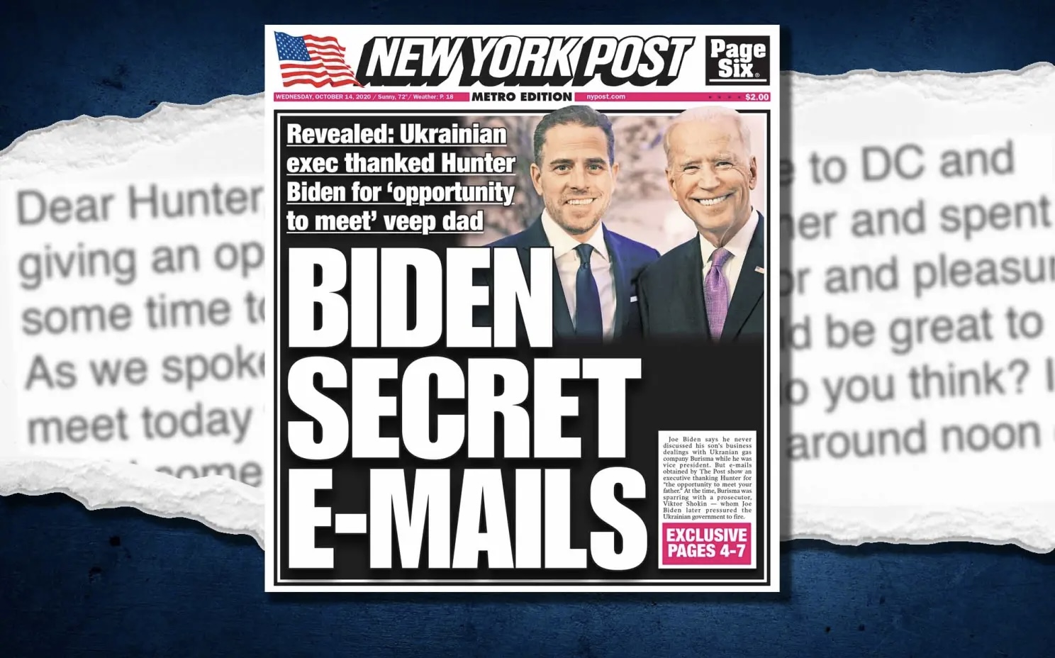 Όλα ξεκίνησαν όταν η εφημερίδα New York post πήρε στα χέρια της τα αρχεία που περιείχε το λάπτοπ του Χάντερ Μπάιντεν, ο οποίος το είχε αφήσει σε έναν τεχνικό ηλεκτρονικών υπολογιστών για κάποιο πρόβλημα που αντιμετώπιζε. Μόλις ο τεχνικός είδε το περιεχόμενο, έφριξε και το έδωσε στην δημοσιότητα. Στέλνοντας τους σε όλες τις μεγάλες εφημερίδες και ΜΜΕ των ΗΠΑ, ενώ ο ίδιος φέρεται να εγκατέλειψε την χώρα πανικόβλητος!