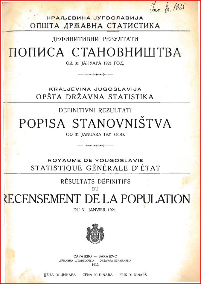 Καταθέτουμε στους αναγνώστες μας τις 475 σελίδες της απογραφής του 1921στο «Βασίλειο των Σέρβων, Κροατών και Σλοβένων», όπως ήταν τότε η επίσημη ονομασία του κράτους και τους σχετικούς πίνακες.