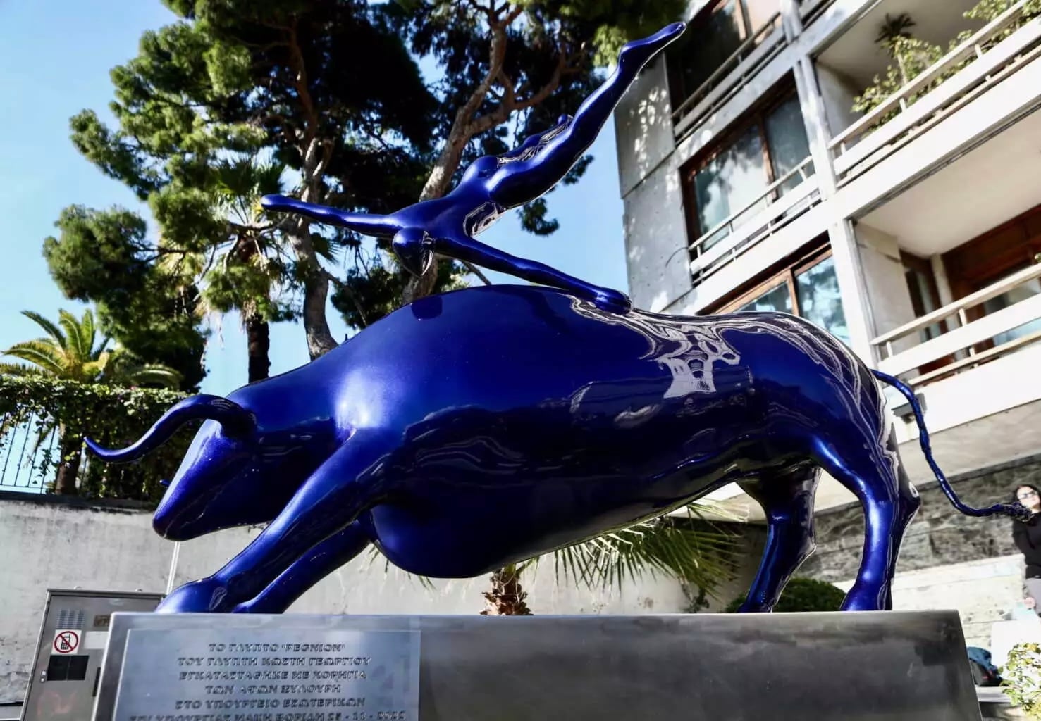 που κοσμεί την είσοδο του Υπουργείου Εσωτερικών, παρουσία του Μάκη Βορίδη. Πρόκειται για ρελάνς του Μάκη Βορίδη στο μικρό βόδι που έχει στο γραφείο του ο Κυριάκος Μητσοτάκης μαζί με τα βατραχάκια.