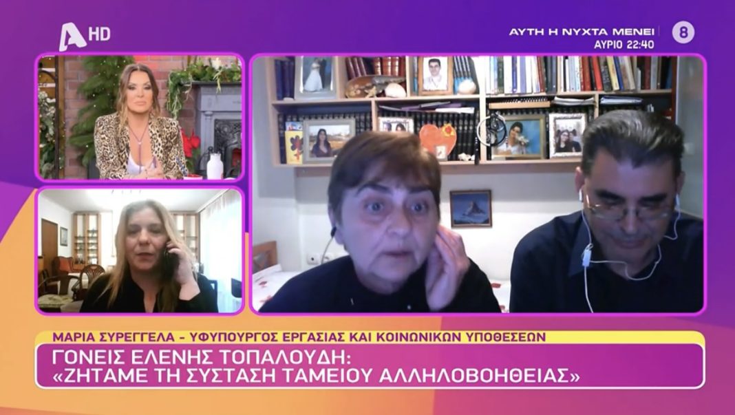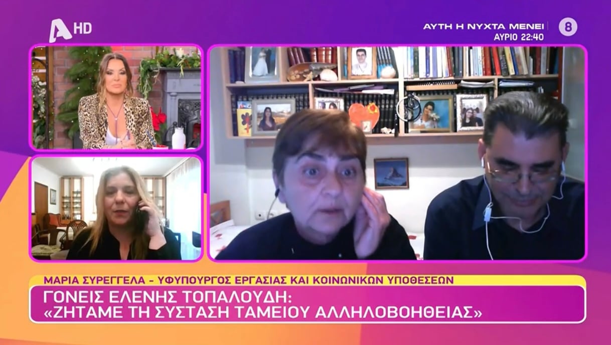 Χαμός στον «αέρα» της εκπομπής «Καλύτερα δε γίνεται» με τη Ναταλία Γερμανού, με τη μητέρα της αδικοχαμένης Ελένης Τοπαλούδη να εξοργίζεται με τα λεγόμενα της υφυπουργού Εργασίας και Κοινωνικών Υποθέσεων Μαρίας Συρεγγέλα και να ξεσπά σε ζωντανή σύνδεση.