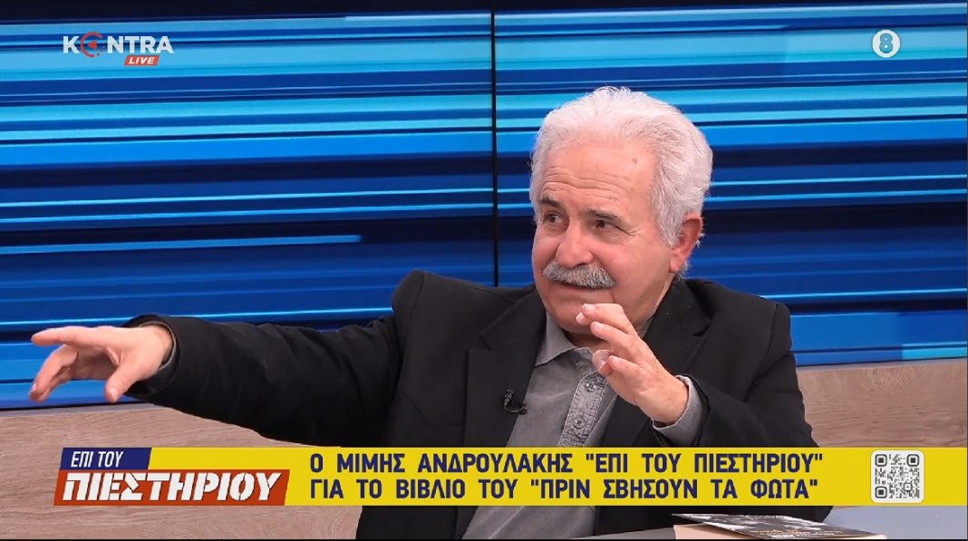 Ο Μίμης Ανδρουλάκης μιλάει στο Kontra για το νέο του αυτοβιογραφικό και ιστορικό βιβλίο “ΠΡΙΝ ΣΒΗΣΟΥΝ ΤΑ ΦΩΤΑ”, για την γενιά του Πολυτεχνείου, τον Ανδρέα Παπανδρέου, τις σημερινές πρωτοβουλίες για προοδευτικό μέτωπο από τον Αλέξη Τσίπρα και τον Νίκο Ανδρουλάκη.