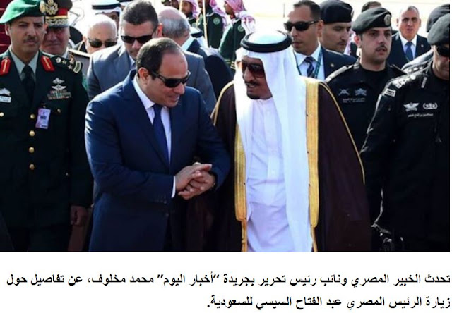 Ο Αιγύπτιος ειδικός και αναπληρωτής αρχισυντάκτης της εφημερίδας «Σημερινά Νέα»/ «Αχμπάρ αλ Γιουμ», Μοχάμεντ Μαχλούφ, μίλησε για λεπτομέρειες σχετικά με την επίσκεψη του Αιγύπτιου προέδρου Αμπντέλ Φατάχ αλ Σίσι στη Σαουδική Αραβία.